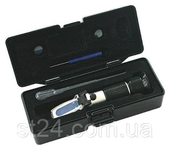 Рефрактометр SATRA S-AFT - апарат для перевірки коефіцієнтів рідини, наприклад, для тестування рідини в системі охолодження, омивача скла, електроліту в акумуляторі. Рефрактометр виготовлений з латунного матеріалу, вимірювальна шкала вигравіруваний, а корпус виготовлений з алюмінію, завдяки чому він стійкий до механічних впливів.